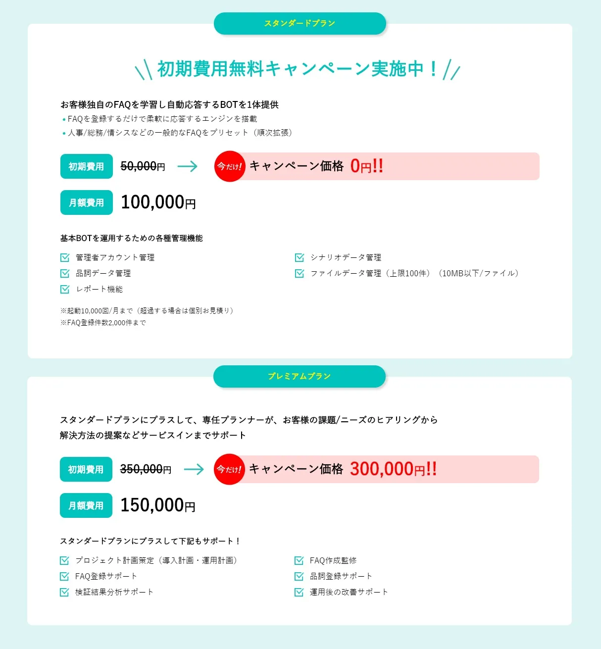 スタンダードプランにおいては初期費用が無料となり、専任プランナーによるコンサルティングなど充実したサポート体制のプレミアムプランもお得にご利用いただけますので、ぜひこの機会にご検討ください。