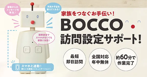 日本PCサービスでコミュニケーションロボットBOCCO初期設定サポートを開始 高齢者の話し相手・留守番中のお子さんの見守り役に