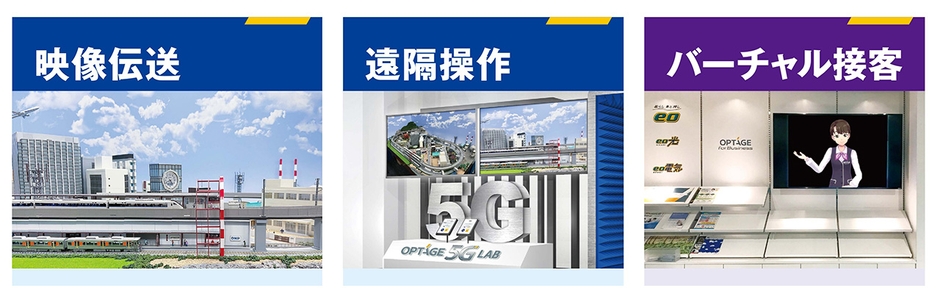 オプテージビル3階にも、5G用の無線基地局と5G端末が展示されています。これらで構成された「5Gリアルタイム4K映像伝送・遠隔操作」は、「ローカル5G」の特長である「高速・大容量」通信や「低遅延」を体験できます。展示は3階受付スペースに設けられているので、待ち合わせの間などで自由に体験できます。