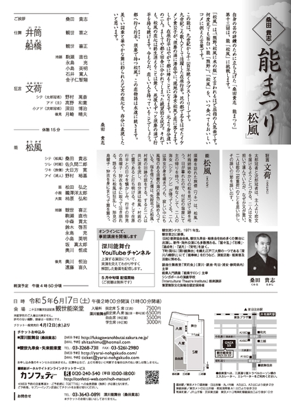 深川能舞台『桑田貴志 能まつり「松風」』