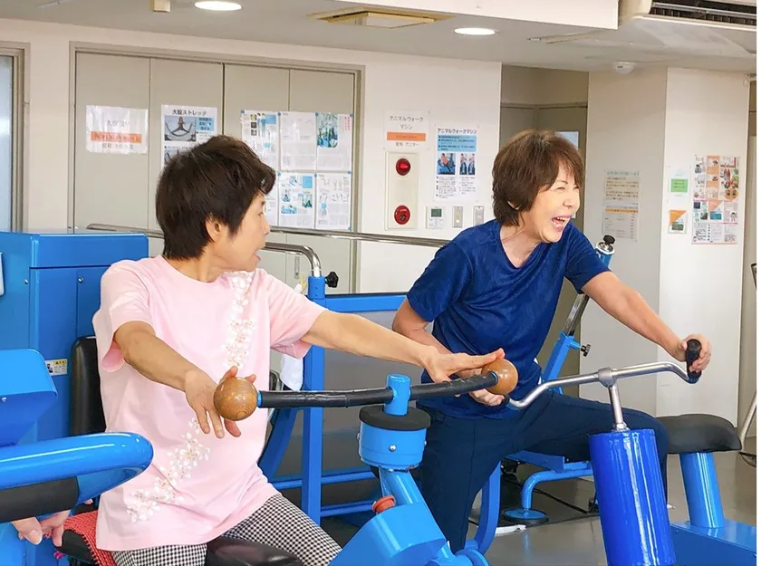 誰にでもできるけれど、正確に動作しようとすると難しい要素を持った動作学習型のマシン(スプリント・トレーニングマシン)や、正しいからだの軸を作って運動する体軸形成運動マシン(車軸移動式パワーバイク)、普段強化しにくい筋肉で、衰えている筋肉などを無理なく活動させることによって全身のバランスを整えるバランス向上マシン(アニマルウォークマシン、大股渡り)、身体のコンディションを向上させていく調整型マシンなど(和船漕ぎマシン)、肩こり軽減マシン(ショルダーリンク)、柔軟性を向上させるマシン(大股渡り、コキシアリンクなど)各種のトレーニングマシンと取り組んで楽しく、運動神経や自律神経の働きを高めます。また、回復期リハビリ後の継続的なリハビリ、認知症予防や介護予防、膝腰痛改善、姿勢や歩行能力の改善、スポーツ動作の向上、お子様の走力アップにも効果が期待できます。