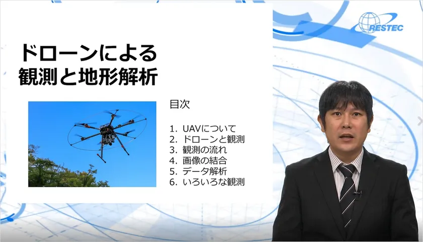 2020年6月、一般財団法人リモート・センシング技術センター(RESTEC、理事長:池田 要)は衛星リモートセンシングのe-Learningに「ドローンによる観測と地形解析」科目の提供を開始いたしました。