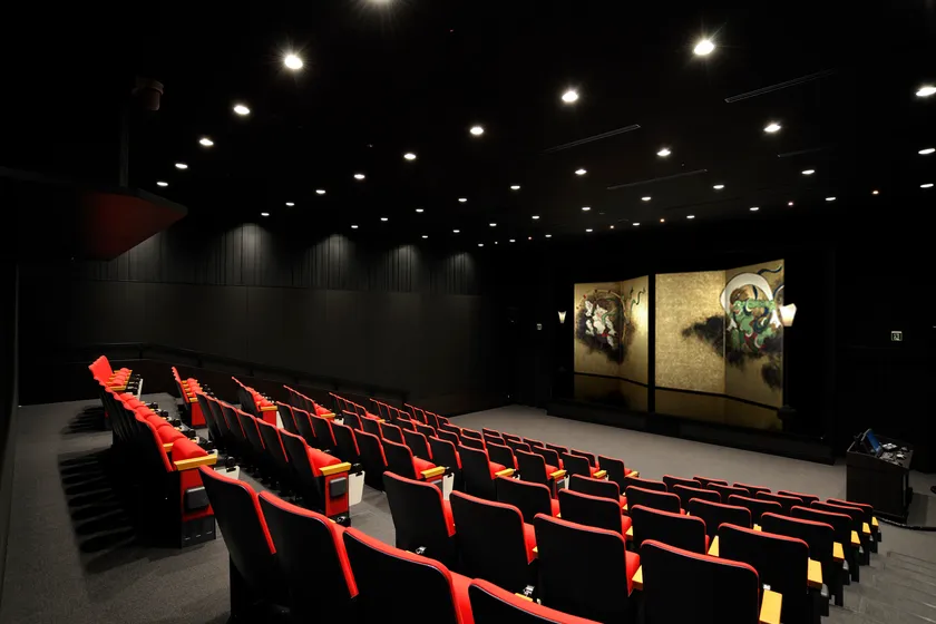 東京国立博物館東洋館地下1階に設けられたシアターで、VRによる文化財の新しい鑑賞体験を提供しています。横幅6.6メートル、高さ3.7メートルの大型スクリーンに映し出される超高精細なVR映像では、文化財の質感や肉眼では見ることのできない細やかな造形までじっくりと堪能することができます。また、ナビゲーターがVR映像を操作しながら進行するライブ上演により、お客さまとのコミュニケーションを通じて文化財への理解をより深めていただけます。