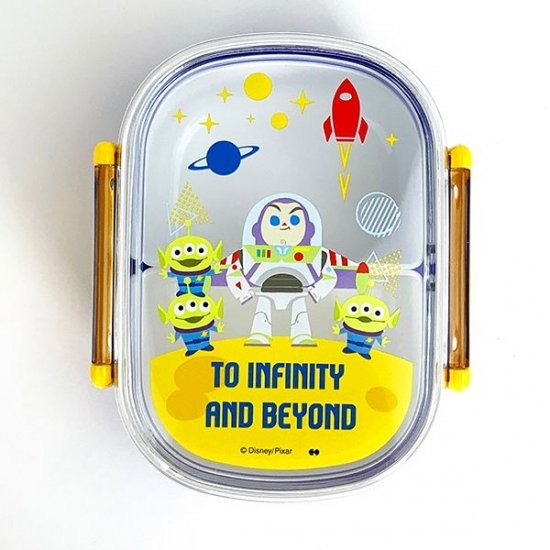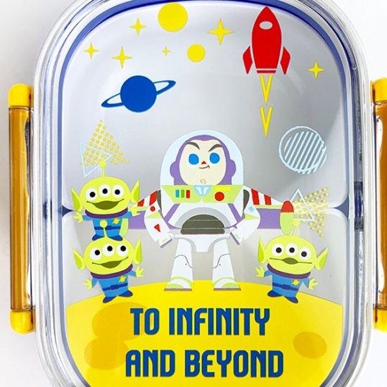 こちらはフタがクリアなお弁当箱。バズやエイリアンが可愛く描かれています。”To infinity and beyond”無限の彼方へさぁ行くぞ、の文字が大きくプリントされてますね♪