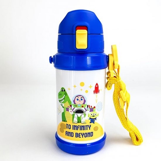 お弁当箱と同デザインの水筒です。前面には同じく”To infinity and beyond”の文字と恐竜のレックスも仲間入り☆