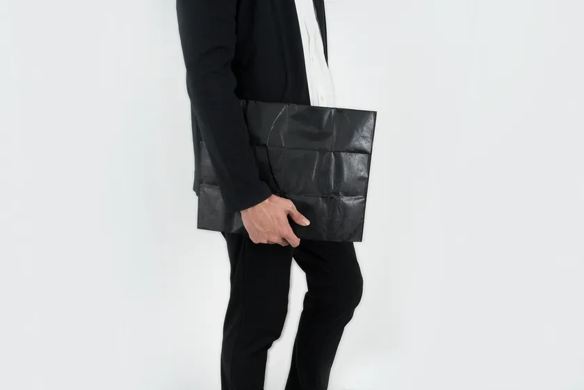 折り曲げてクラッチバッグとしても使用できる汎用性の高いデザイン。