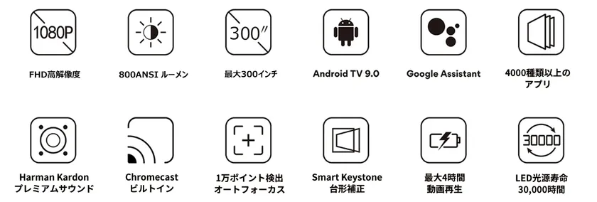 XGIMIはGoogle社のグローバルパートナーとして、「Halo」にAndroid TV OSを採用しています。Android TVはGoogle社が提供しているAndroidを搭載したスマートテレビ用のプラットフォームです。ユーザーがテレビでコンテンツを楽しむ為にデザインされているので、プロジェクターとの相性も良く高い操作性を誇ります。Google Playストアからは4,000を超えるアプリがダウンロードでき、数えきれないほどのゲームや映像が楽しめます。