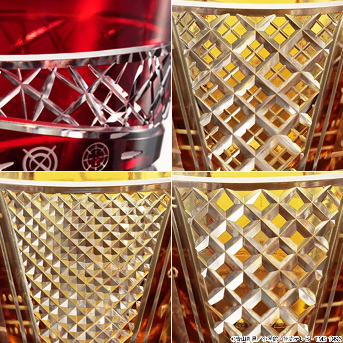 【緋色の狙撃手】は、緋色のガラスに銃弾の弾道を思わせる“ 乱れ矢来文(やらいもん)”が、【琥珀の秘密主義者】は、琥珀色のガラスに料理が得意な沖矢にちなんだ“魚子文(ななこもん)”が、それぞれ繊細なカッティングで表現されています。