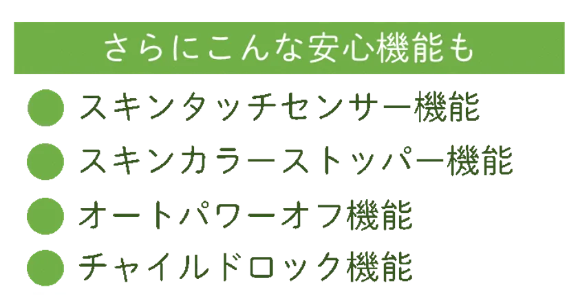脱毛に特化し、必要な機能を全て搭載。安全設計でご家族でご使用いただけます。