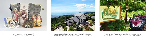 当企画では、数学者C・L・ドジソン(イギリス、1832年~1898年がルイス・キャロルの筆名で書いた『不思議の国のアリス』(1865年初版)の世界観をイメージした展示やイベント、ショッピングなどを六甲オルゴールミュージアム、六甲ガーデンテラス両施設にて楽しむことができます。