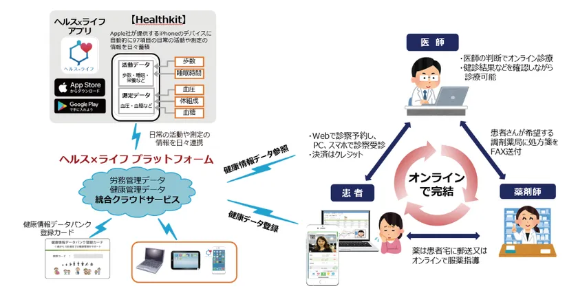 スマホアプリ「ヘルス×ライフ」で蓄積された健康データを活用し 質の高いオンライン診療を提供