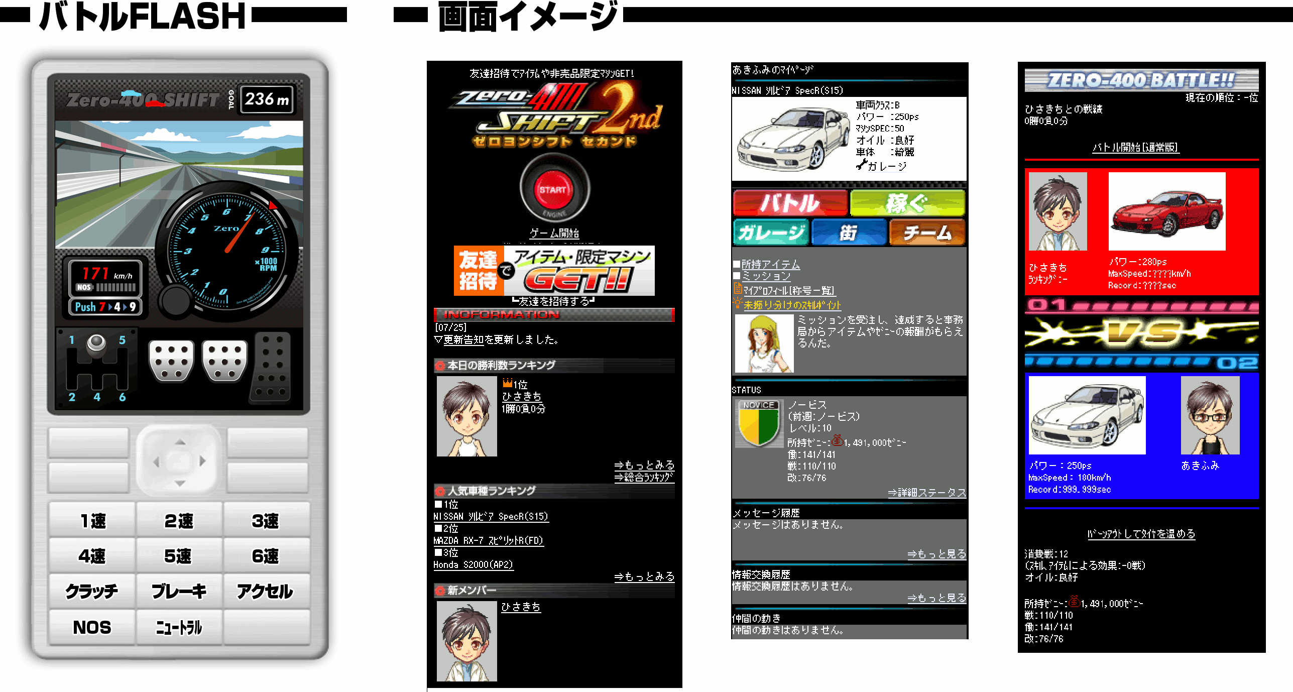 Flashバトルにユーザー様から要望の高かった、AT版を追加。簡単にゼロヨンバトルをお楽しみ頂けます。