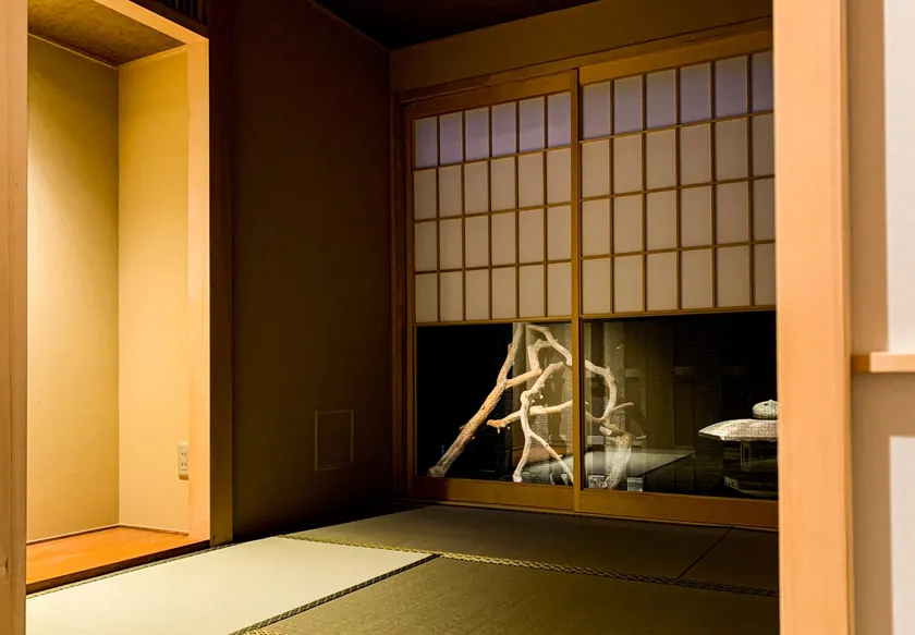 Hotel zizi Kyotoのエントランス(左)と広さが自慢の和モダンなお部屋