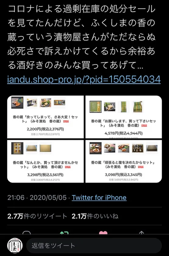 みそ漬処 香の蔵(本社:福島県南相馬市、代表取締役:菅野 行雄、以下 香の蔵)は、2020年6月17日より、スペイン産のオリーブを使用した、新商品「魔界のオリーブ」シリーズ<黒胡椒トマト・黒たまり・白だし>の3種類を新発売しました。香の蔵は5月にTwitterで、コロナ禍による販売応援サイトでの、セット商品のネーミングに対する投稿が話題となり、2.7万RTと、2.1万いいね!がつき、大きな反響がありました。
