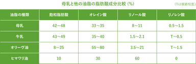 (2) オリーブオイルの脂肪酸のバランスは、母乳に近い