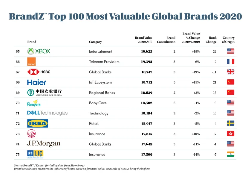 BrandZ(TM)が2020年最も価値のある グローバルブランドTOP100を発表 Haierが、唯一のIoTエコシステムブランドとしてランクイン