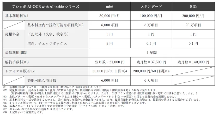 また、同時発売に読取り枚数が多い方向けの「アシロボAI-OCR BIG」を加えた事で、アシロボAI-OCRが全3シリーズとなりました事を併せてお伝えいたします。