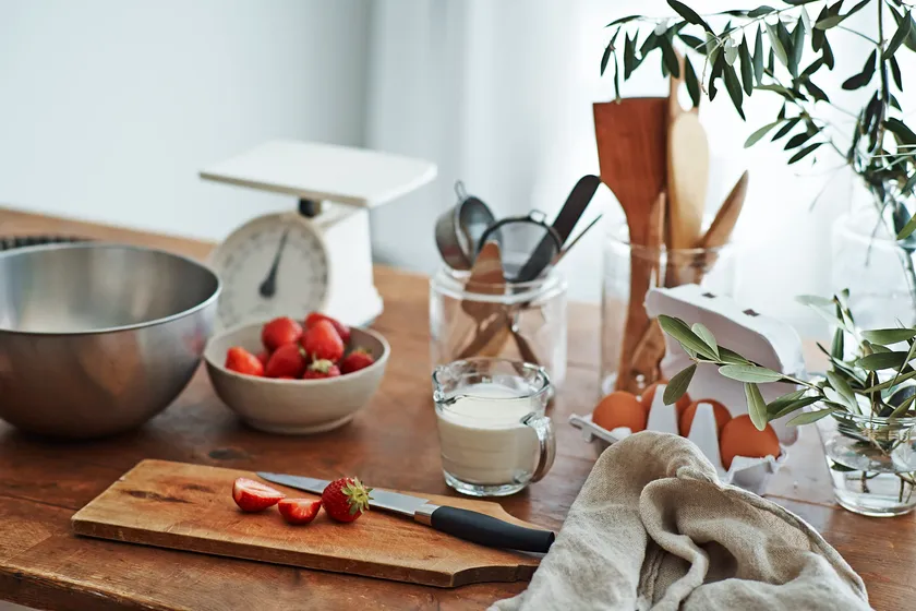 オーブン・ボウル(大・小各1個)・へら・計量カップ・スケッパー・包丁・まな板・めん棒・スケール・茶こし・ラップ・ぬれ布巾・クッキングシート・こね台(こねられるスペースがあれば無くても可)