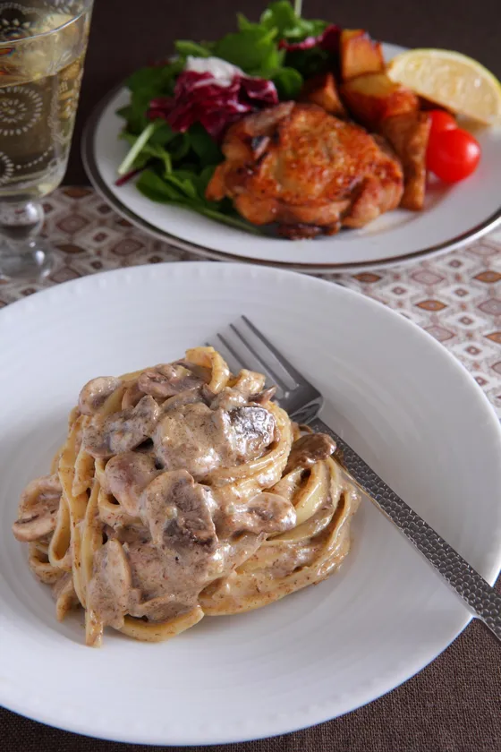 タリオリーニ(幅2~3mmの平打ちパスタ)を生地から作っていきます。太めの麺に濃厚なトリフソースがからんで1度食べるとやみつきに。自宅で外食気分が味わえます。