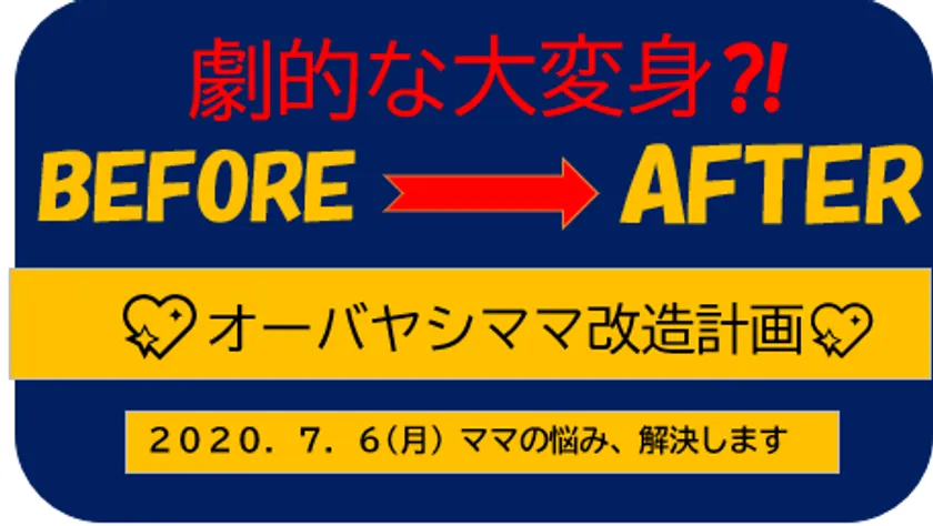 株式会社オーバヤシ(本社:愛知県豊橋市大清水町字大清水106番地、代表取締役:大林 成行)は、ワクワク楽しく買い物プロジェクトの一貫として、「大変身!劇的なビフォーアフターママ改造計画」を豊田浄水店(所在地:愛知県豊田市浄水町浄水特定土地区画117ブロック内)にて実施いたします。