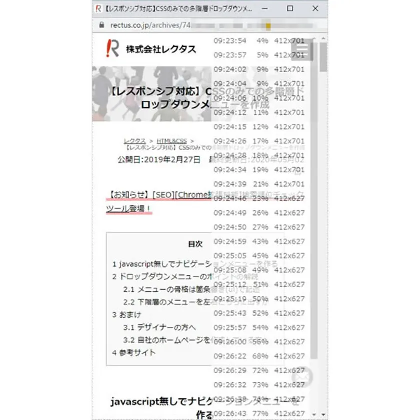 読者各人がいつ、どのページをどのようなブラウザでどのサイズでどのようにスクロールして見ていたかを再現して実際に見ることが出来るツールになっています。