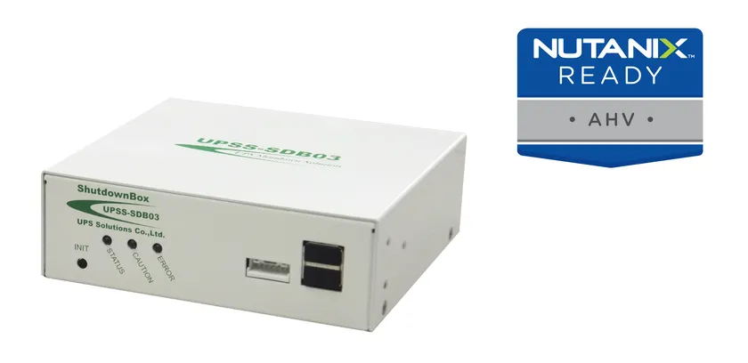 UPSソリューションズ株式会社(本社:東京都千代田区、代表取締役社長:南 竜也、以下 UPSS)は、UPS(無停電電源装置)連携アプライアンス製品として提供している「UPSS-SDB03-V」(商品名:シャットダウンボックス)について、Nutanix AOSの最新LTSリリースである AOS 5.15において「Nutanix Ready」認定を受けたことを発表しました。