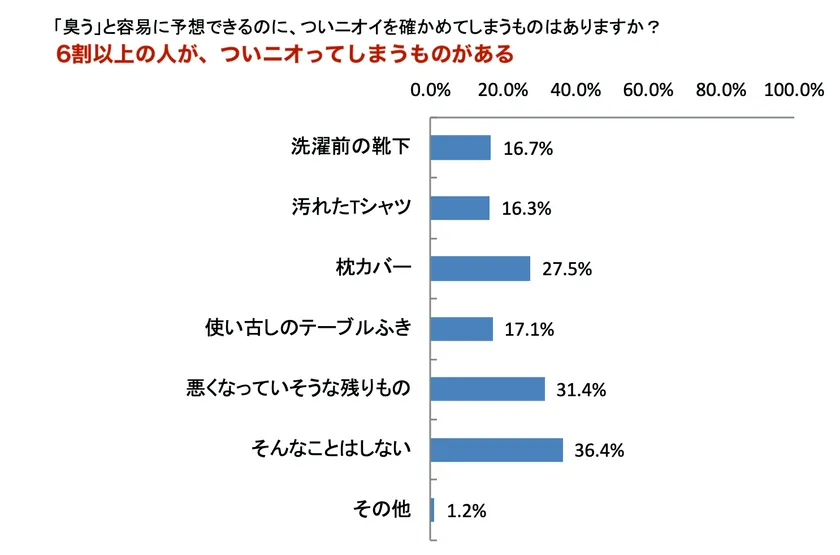 ■6割を超える人が、臭いのについニオってしまうものがあります。例えば「枕カバー」