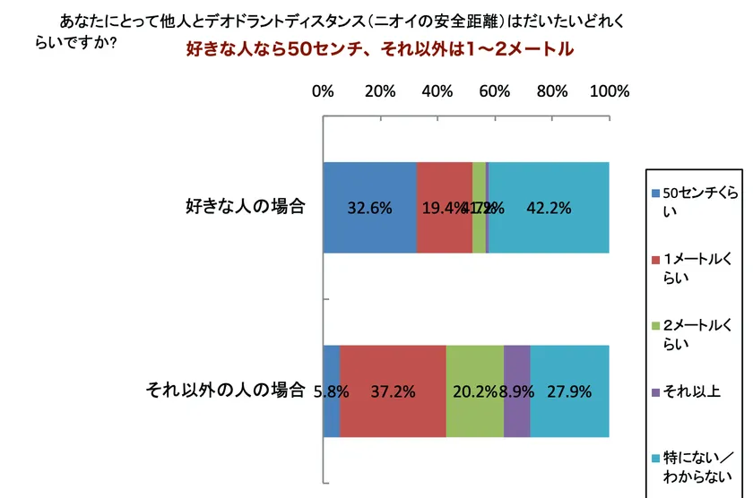 ●デオドラントディスタンス(ニオイの安全距離)、好きな人は50センチと他の人の距離の半分に。