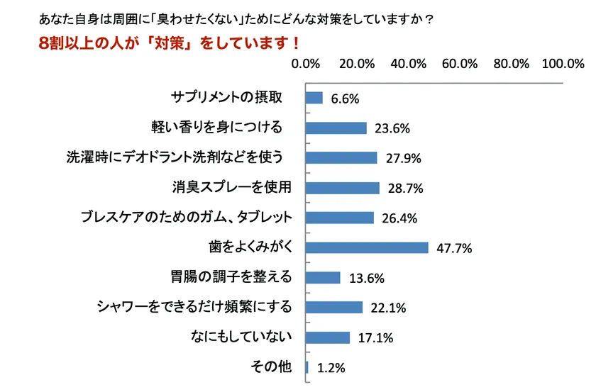 ●8割以上の人が、臭わせたくない努力を実行しています。