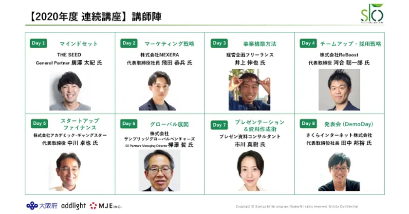 ※スタートアップ・イニシャルプログラムOSAKAとは、まだ世の中にない新たな価値を自ら創出し、急速な規模拡大を志向し、大阪からグローバルを舞台に市場を求める、初期段階のスタートアップ及び起業前後の方を対象として、事業立ち上げ時に必要とされる専門的な支援プログラムを実施するもの。