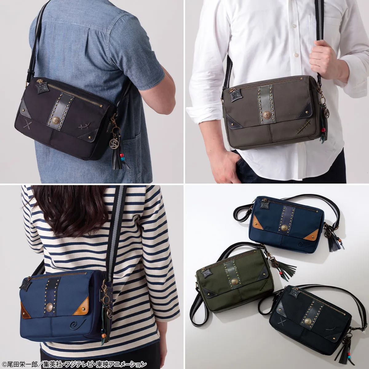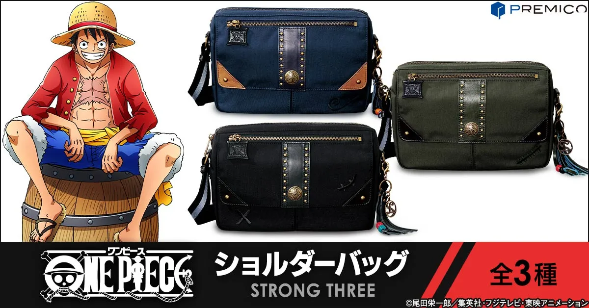 ルフィ、ゾロ、サンジが揃い踏み!麦わらの一味の頼れる3人にふさわしい 耐久性に優れる素材を生地に使用した3色のショルダーバッグが登場!!