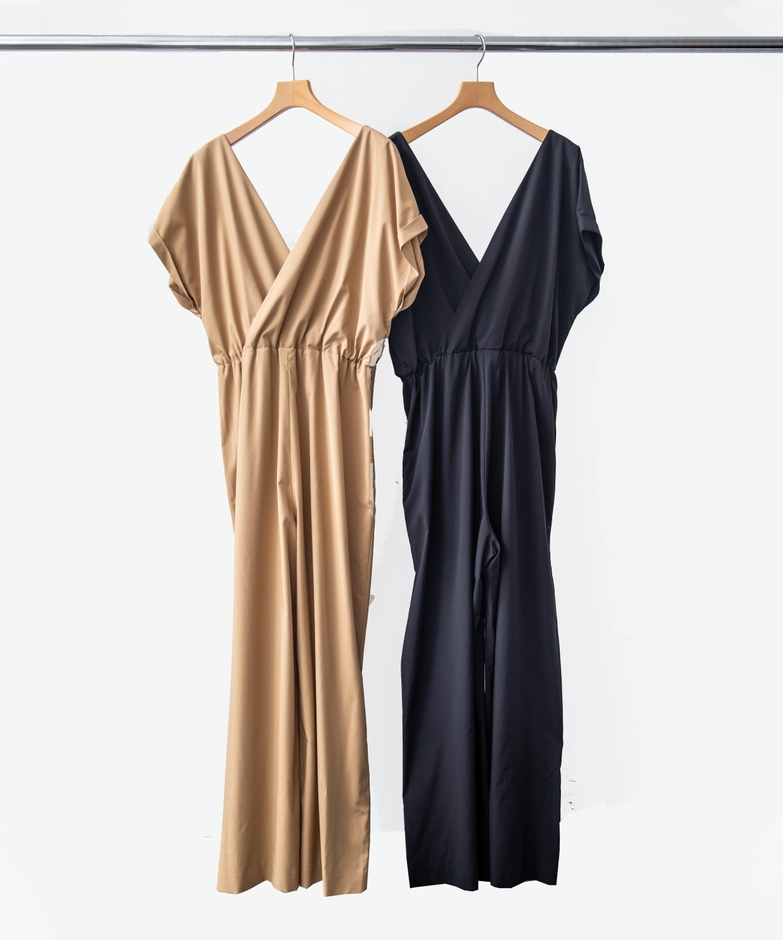 何かと使いやすいオールインワンを、水着の上からでも着ることができるように、とこだわった一着。深Vながらもセクシーになりすぎず、きれい目なシルエットで、スタイルカバーもしてくれます。ちょっとしたパーティーなどにも着用できる生地感なので、様々なシーンで着ることができる。