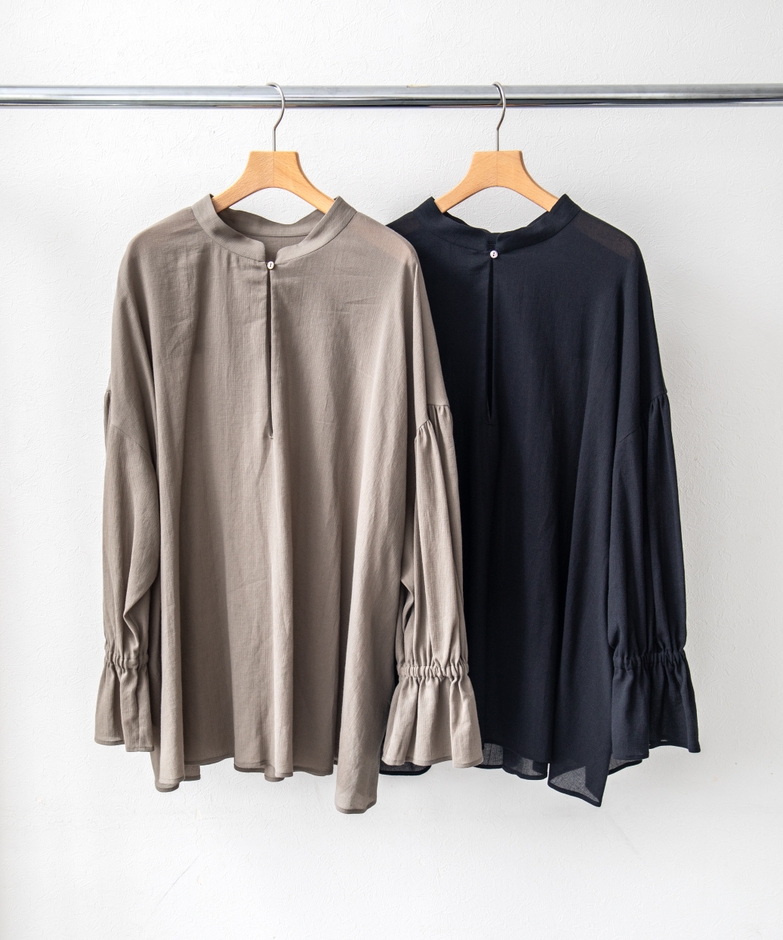 透け感のあるリラックスアイテムを作りたいという思いから誕生。袖口にゴムを入れ、腕まくりをしても落ちてこないので、袖周りのシルエット次第で個性が出せる一着になっている。薄くて軽い素材に加えて、ヒップまで隠れる丈感なので、水着の上にさらっと着るのもオススメ。