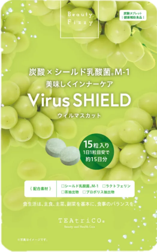 新処方!炭酸×シールド乳酸菌(R)M-1でウイルスや菌に強い からだ作りをサポートする健康補助食品 炭酸タブレット『Virus SHIELD ウィルマスカット』 8月より販売スタート