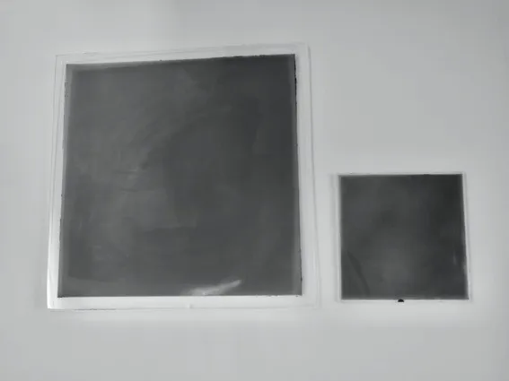 ▲パリティミラー300 (300mm×300mm)、右は従来のサイズ(150mm×150mm)