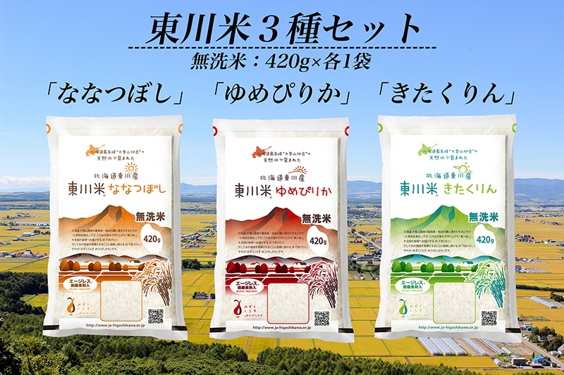 1.【無洗米】ゆめぴりか、ななつぼし、きたくりん:各420g×1袋