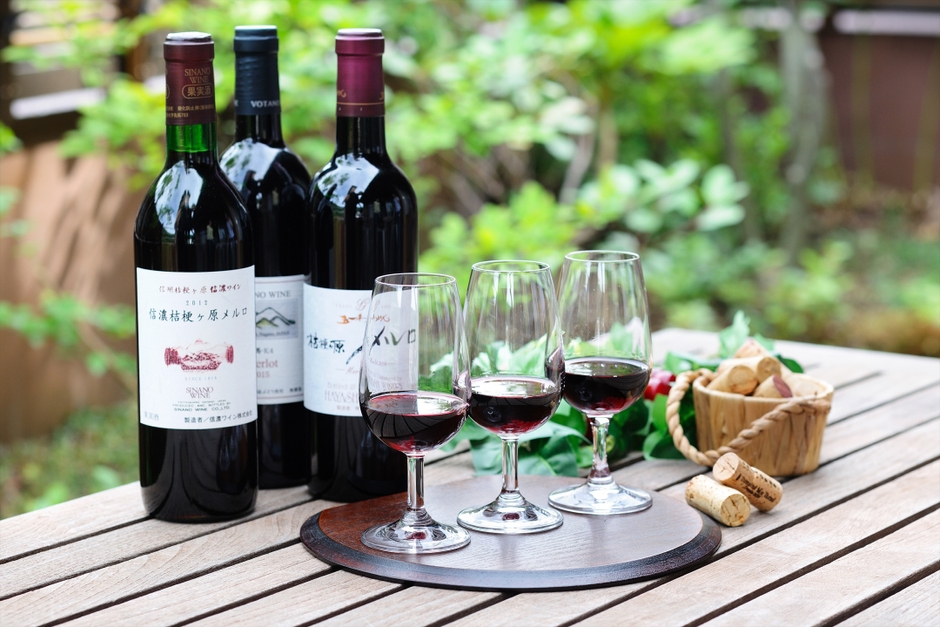 もうひとつのお楽しみは長野ワイン。長野県はワイン生産量全国2位で、大規模な酒造メーカーから家族経営の小さなワイナリーまで多数の拠点があります。界 松本では地元ワイナリーのワインを多く取り揃え、テイスティングや作り手のこだわりをお伝えする「NAGANO WINE紀行」を実施しています。