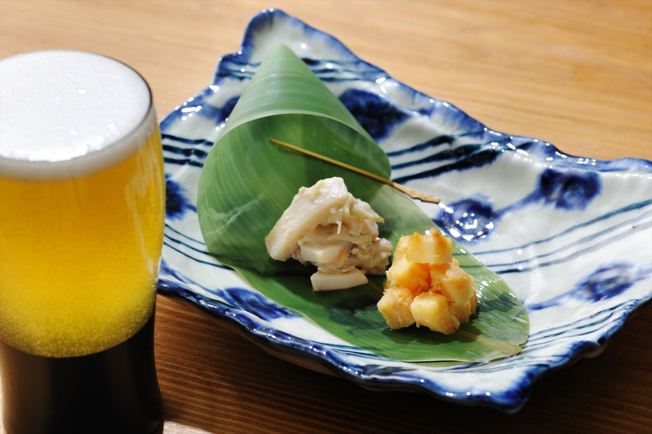 地元おなじみの信州サーモンの新しい魅力を引き出す一品を提供します。信州サーモンは、佐久穂産米を使用した黒澤酒造の銘酒「八千穂」に浸け込み、八千穂高原の白樺を使い燻製にしています。このスモーク香が、牛肉と信州サーモンをつなげる風味の「橋」となり、斬新な味わいの調和を生み出しています。おろしたての本わさびと合わせて、信州の豊かな幸の出会いを楽しむことができます。
