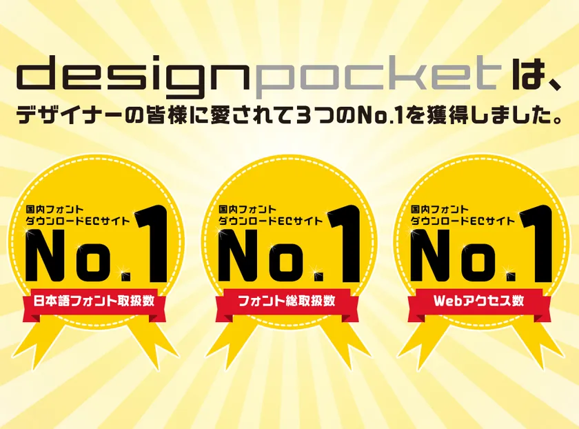 また、《designpocket(デザインポケット)》が国内フォントダウンロードECサイトの「日本語フォント取扱数」「フォント総取扱数」「Webアクセス数」において、No.1を獲得しましたのでお知らせいたします。