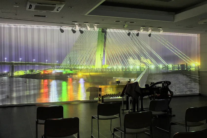 ブライダルや商業施設などで見られるようなプロジェクションマッピングとは異なり、自然の雄大さをイメージしたものやホタルや光が舞う他に、八戸の花火やシーガルブリッジなどが写る演出もあり、安らかに故人をお偲びいただけます。