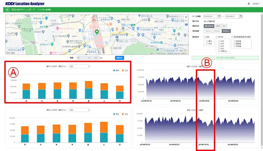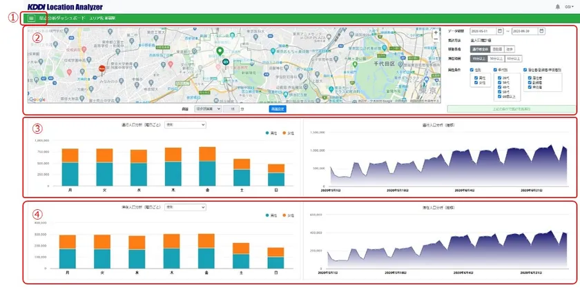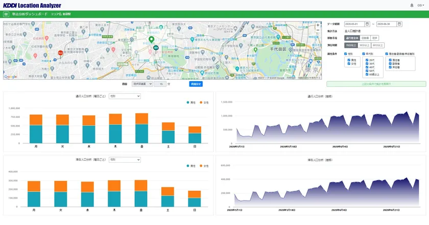 商圏内の通行・滞在人口をスピーディに把握 「KDDI Location Analyzer」、 新機能「エリア版単点分析ダッシュボード」をリリース