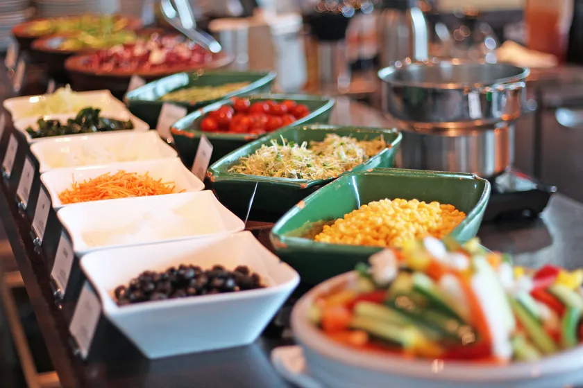 ブッフェコーナーにビニール手袋を設置、着用のお願い