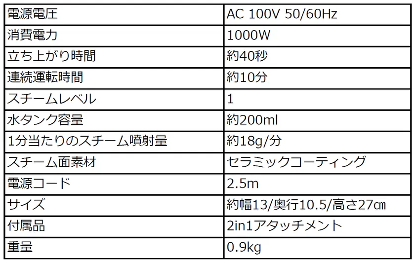 (1)1分あたり約16gの高温高圧スチームでしっかりしわ伸ばし