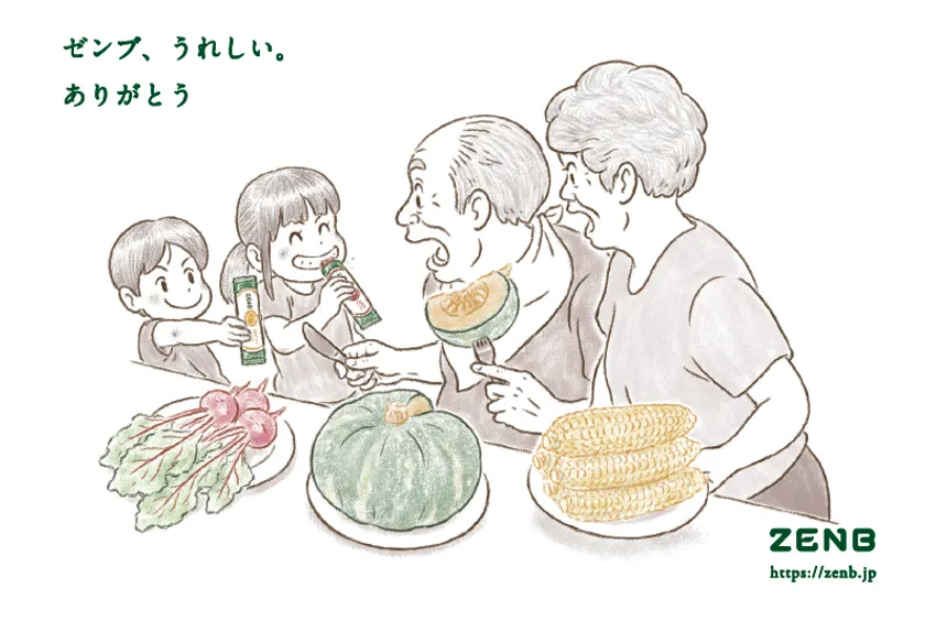 ミツカングループ(愛知県半田市、以下 ミツカン)のZENBブランド( https://zenb.jp )は、この夏のギフト商品として、「ゼンブ、うれしい。ありがとう」をテーマに、まるごと野菜の栄養をぎゅっと濃縮した、おいしくカラダにうれしいギフトセット2種をご用意いたしました。さらに先着500名様に、家族の生活をやさしく描く、人気イラストレーター、スギウラフミアキ氏が描き下ろしたオリジナルポストカードをプレゼントいたします。