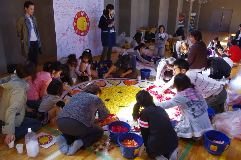 2012年3月11日には、宮城県石巻市の中瀬に、石巻市民とともに追悼アート「桜灯」を制作。1万本のバラとキャンドルで“桜”のアートを創り、桜の開花を待たず亡くなった被災者に向け“花見”を捧げました。