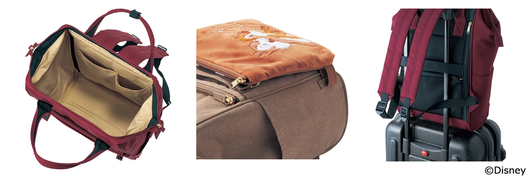 『【遊べる♪カスタマイズシリーズ】がま口デザインリュックサック(選べるキャラクター)』は、「通勤時に使いやすいさりげないディズニーデザインがいい。」という、大人ディズニーファンのご要望に応え開発しました。別売りの『【遊べる♪カスタマイズシリーズ】 2WAYショルダーバッグ(選べるキャラクター)』、『【遊べる♪カスタマイズシリーズ】リュック用整理整頓インナーバッグ「ミッキーマウス」』とリュックを組み合わせることで、ポケットのデザインをチェンジしたり、バッグの収納性をアップし、持ち歩く場所やその日の気分に合わせて楽しむことができます。