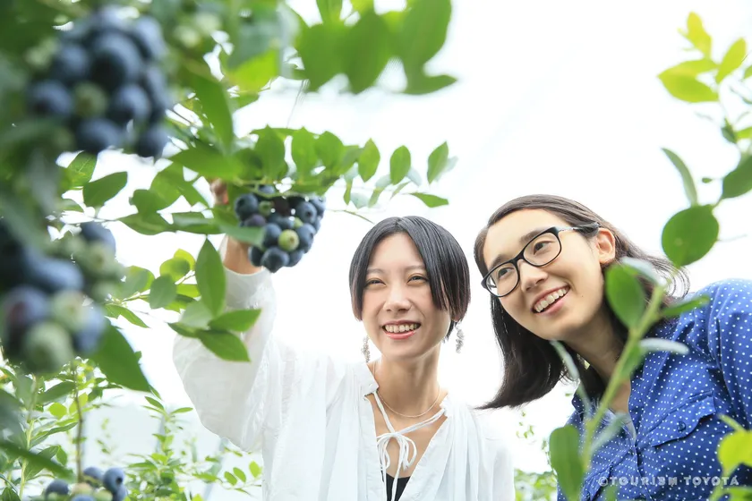 4ヘクタールの農地に、約4,200本、約50種類のブルーベリーが育てられている観光農園。山間部の自然の中にある農園なので、夏でも比較的涼しく、開放感があります。ブルーベリー狩りの後は、併設する「マコのお店」へ。クレープやケーキをいただいたり、お土産探しにもぴったりです。