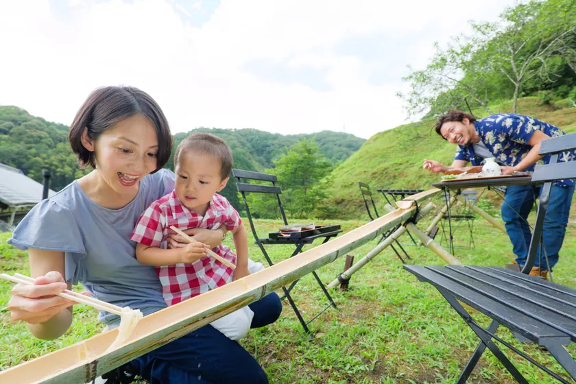 体験メニュー: 本物の竹を使った流しそうめん 4,000円~/名(大人)