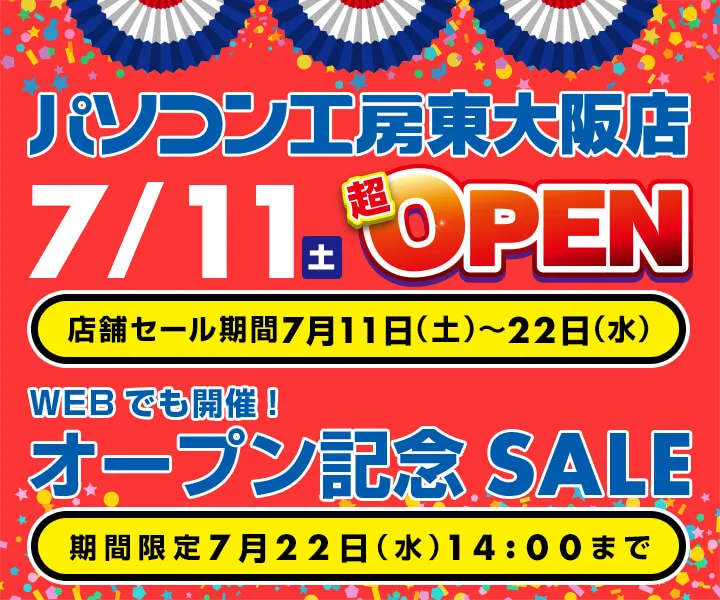 『パソコン工房 東大阪店 7/11オープン記念セール』