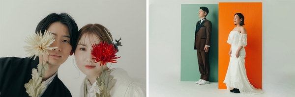 白を基調とし、あえてシンプルに仕上げたスタジオ。真っ白な空間の中で行う撮影は、シンプルだからこそ自由度が高く、和装・洋装問わずおふたりらしさの表現方法は無限大に。新しい撮影機材も加わり、これまでにない撮影スタイルでおふたりの空気感をさらに引き立たせます。